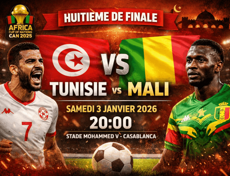 La Tunisie et le Mali s’affrontent ce samedi 3 janvier 2026, lors d’un huitième de finale de la Coupe d’Afrique...